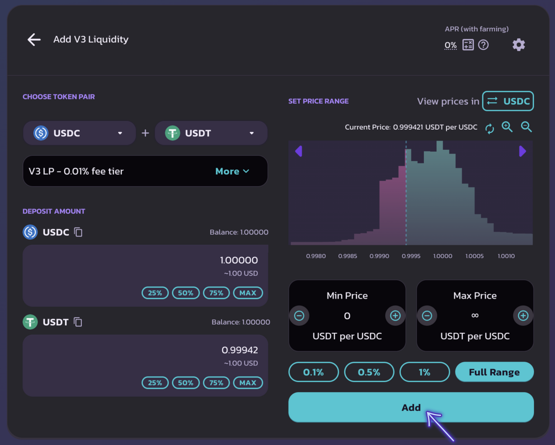 ## 4. Adicione sua Liquidez