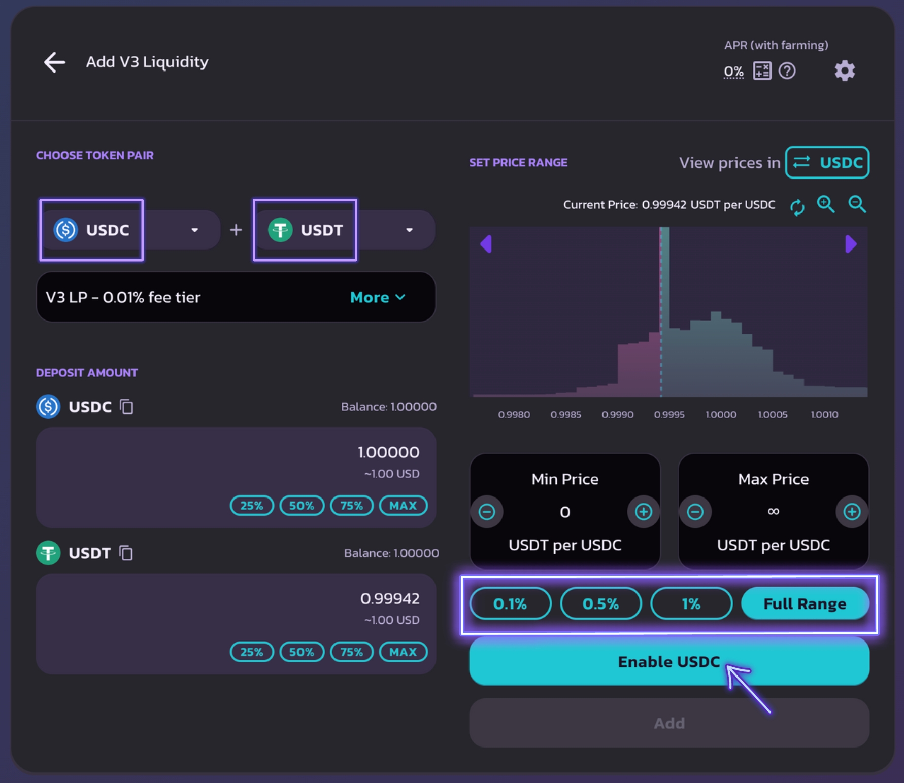 Crie um par de liquidez na: V3, Stableswap ou V2.