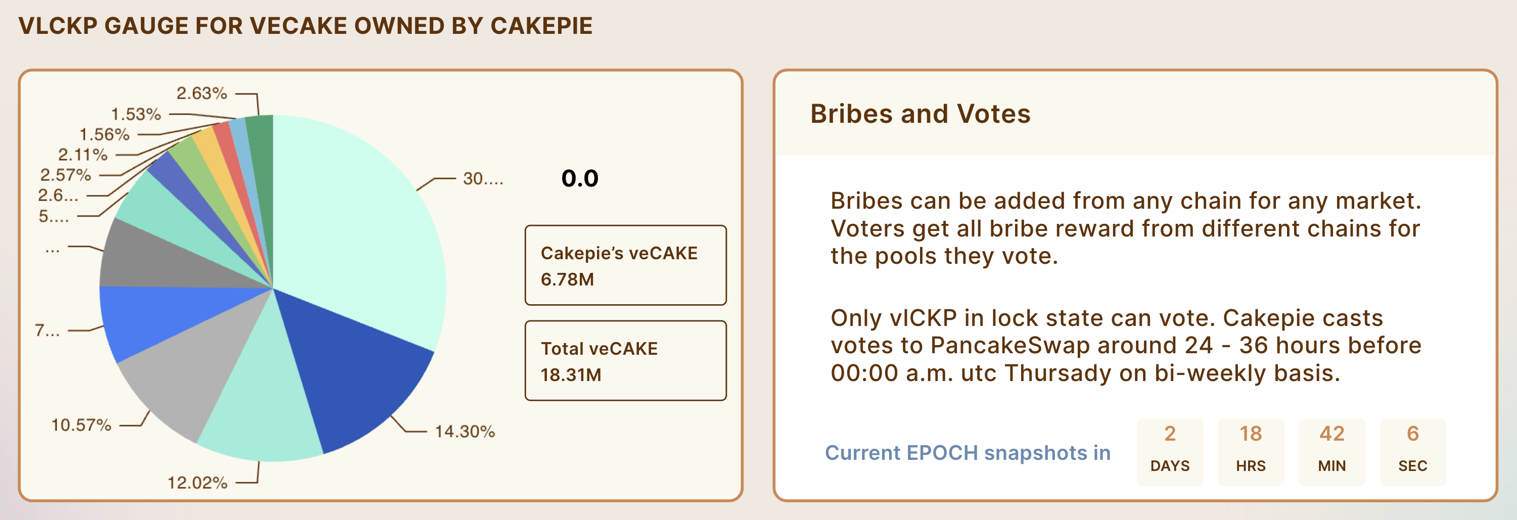 * Os subornos são distribuídos quinzenalmente e devem ser reivindicados na aba "Claim" da Cakepie. Os usuários receberão seus subornos dentro de 48 horas após o término de cada época.