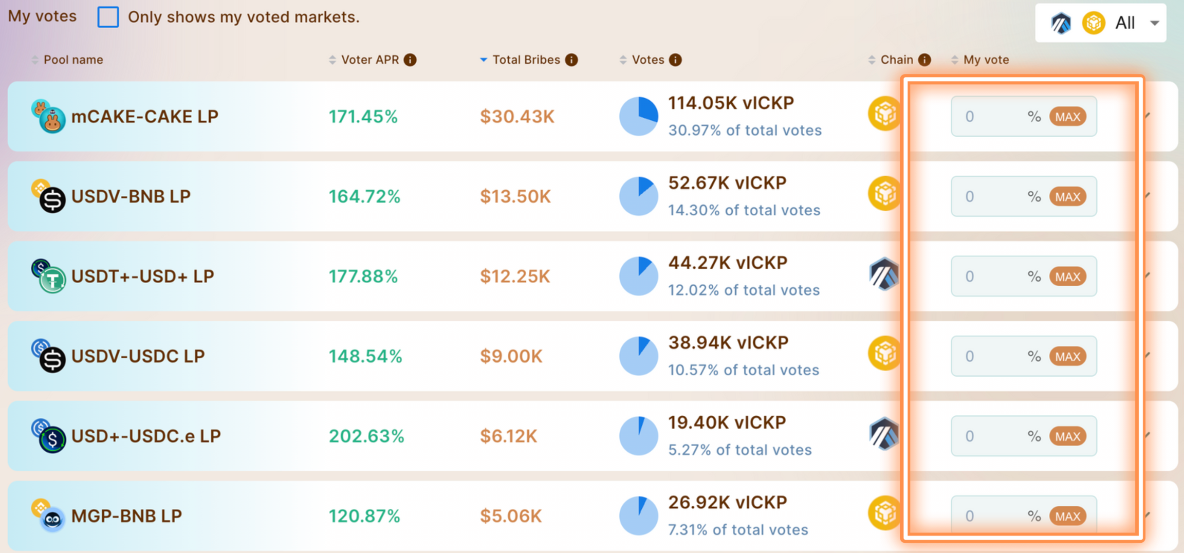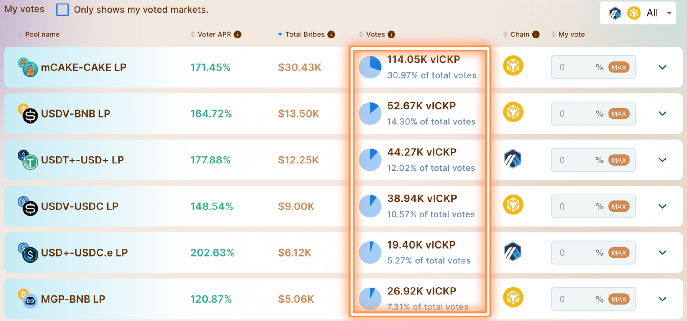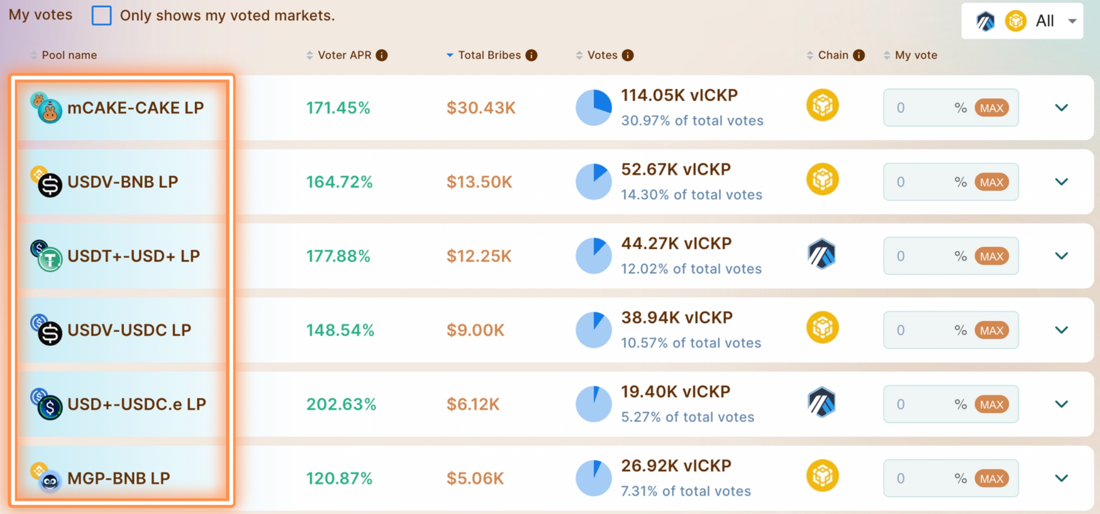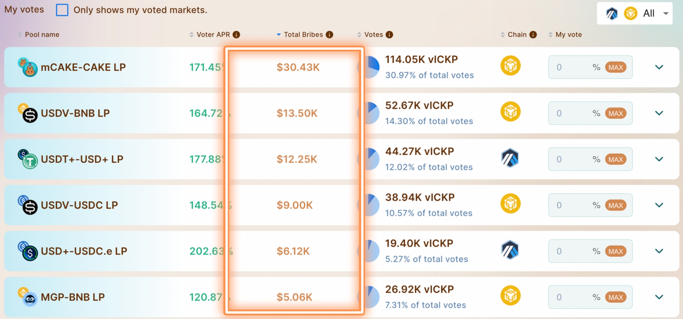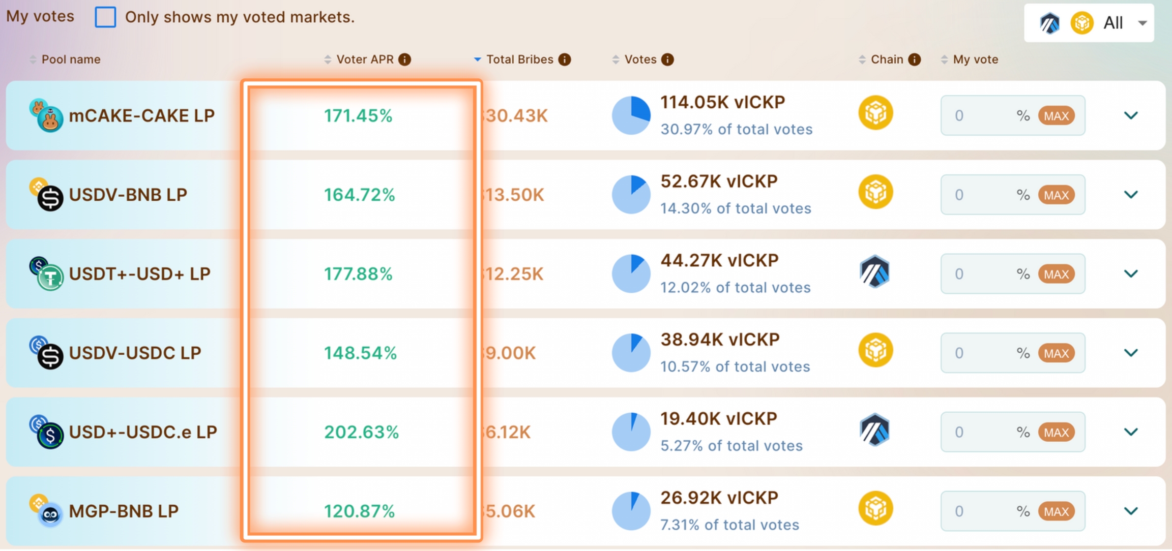 5. Verifique a APR dos subornos que você pode obter votando em pares diferentes