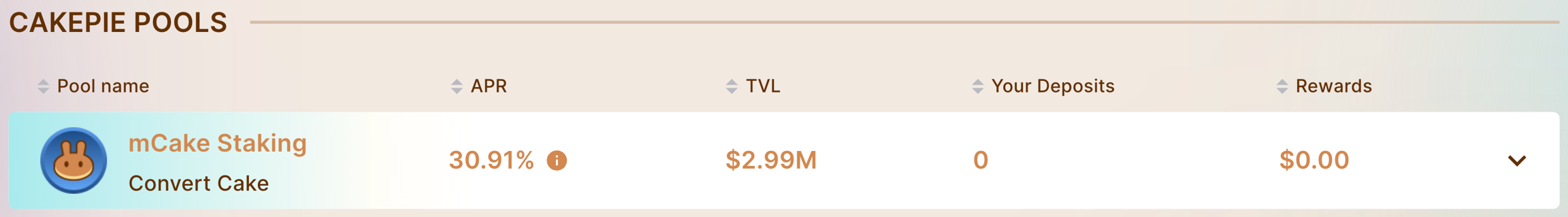 CAKE holders can convert their tokens into mCAKE to earn boosted APR % on Cakepie without any lockup period.