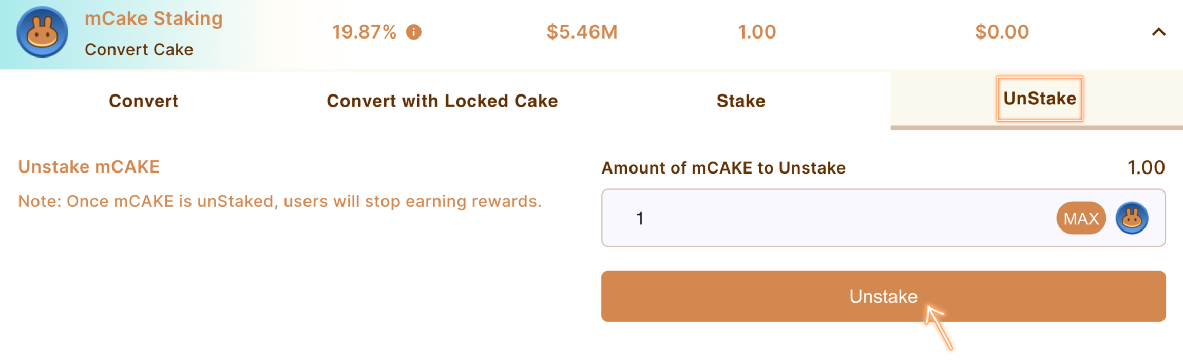 6. Unstake mCAKE